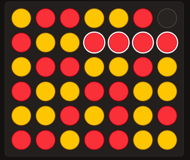 As Connect Four is a solved game, when the player who goes first (red) plays perfectly it is impossible for the other player (yellow) to win.